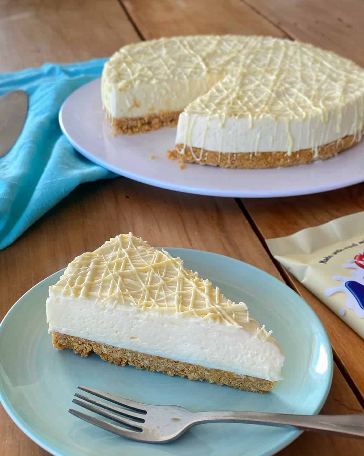 A decadent, no-bake cheesecake made from a biscuit base, a cream cheese, cream and milky bar filling, then drizzled with more white chocolate. A wonderful dessert to make for the white chocolate lovers!