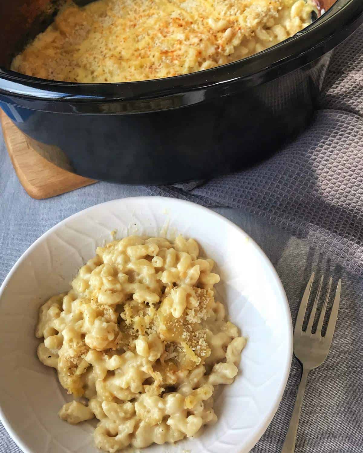This recipe for one-pot, slow cooker mac and cheese is super easy and tasty. A great family meal and freezer friendly.